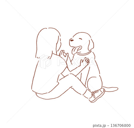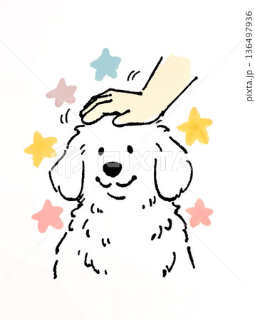 犬 手書きイラスト 撫でる