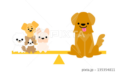 大きな犬と小さな犬たちが並ぶかわいい動物イラスト