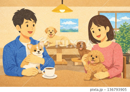 犬カフェ ドッグカフェ 貼り絵風