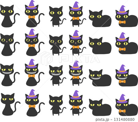 黒猫のいろいろなポーズのイラストセット、Black Cats Illustration Set –