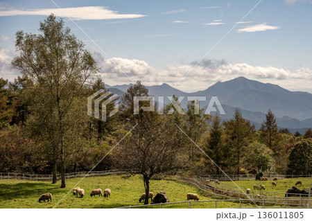 山梨県立まきば公園 ひつじが居る風景