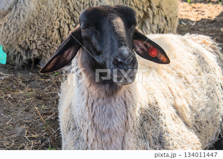 いわぬまひつじ村で佇む黒顔の羊のポートレート