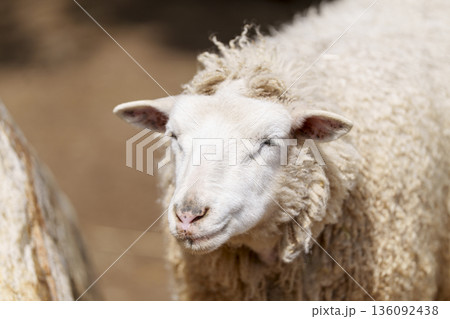 穏やかな表情で立つ羊のクローズアップ