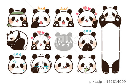 パンダのキャラクターイラスト 表情セット 模様のみ