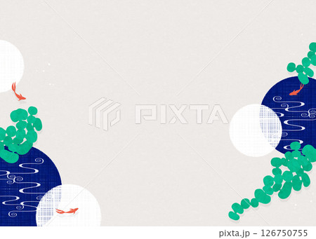 金魚が泳いでいる夏イメージテキスタイル 緑