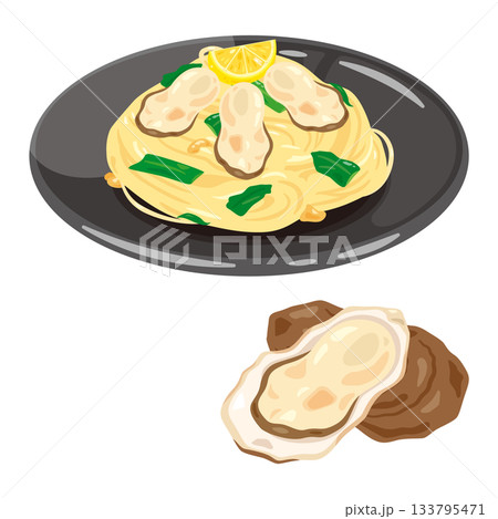 牡蠣 料理・食べ物の手描き水彩イラスト素材