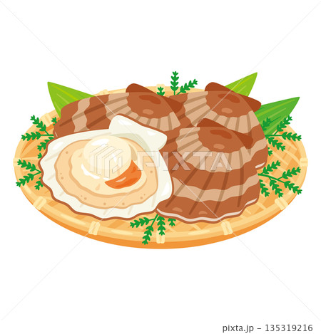 焼いた帆立のイラスト ベクター素材