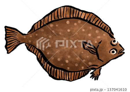 マコガレイの手書き風イラスト カラー筆ペンタッチ図鑑風 海水魚 食用魚 ベクター素材
