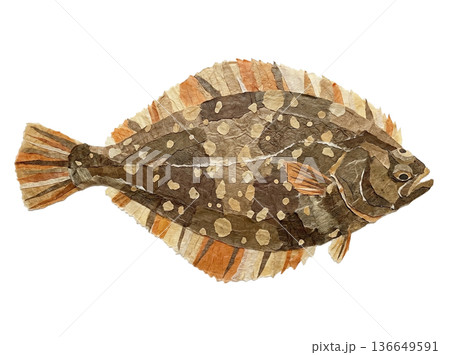 カレイの水彩風イラスト