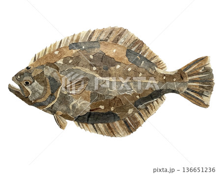 和紙で表現したカレイの平面コラージュイラスト