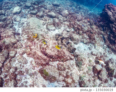 大きなオオセ(テンジクザメ目)とホウライヒメジ、チョウチョウウオ他群れ。ヒリゾ浜南伊豆町中木 静岡県