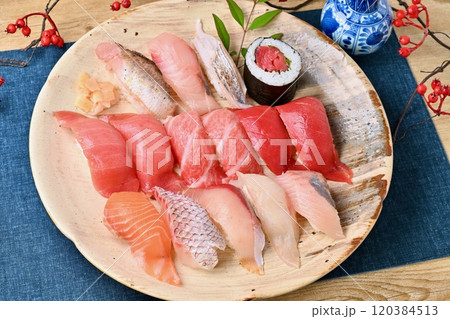 寿司下駄に盛り付けた握り寿司 盛り合わせ