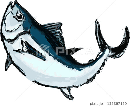 筆で描いた本マグロ(クロマグロ)の手書きイラスト