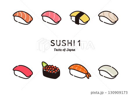 いろいろな、寿司のアイコン(線画カラー)のイラストセット