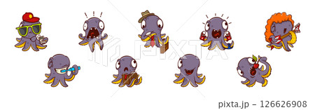 Funny Octopus Character Engaged in Different Activity Vector Set