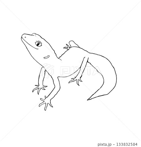 Curved fairy lizard top view. Isolated pencil illustration of reptile for book design, postcards, halloween invitations, poster printing, packaging.