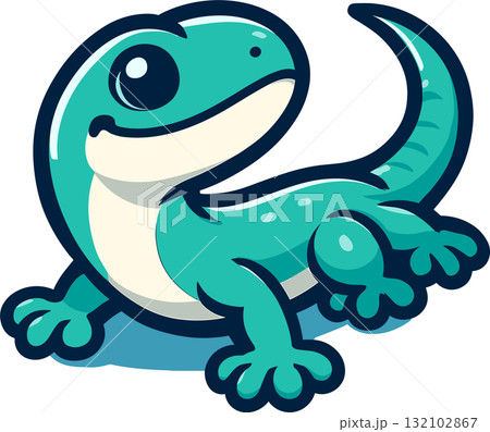 Adorable cartoon gecko with large eyes and colorful spots, ideal for children's illustrations and playful designs.