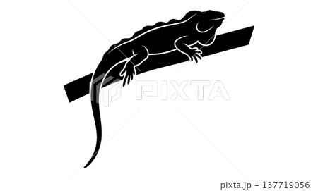 イグアナを描いたリアルな爬虫類の線画イラスト