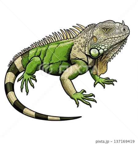Green Iguana Illustration on White Background