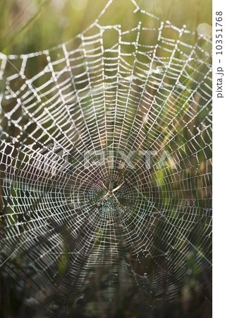 Spider net with drops of morning dew