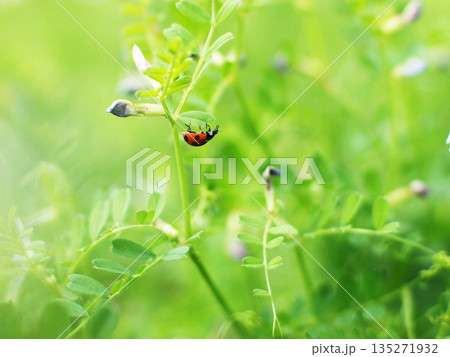 ムラサキツメクサとてんとう虫