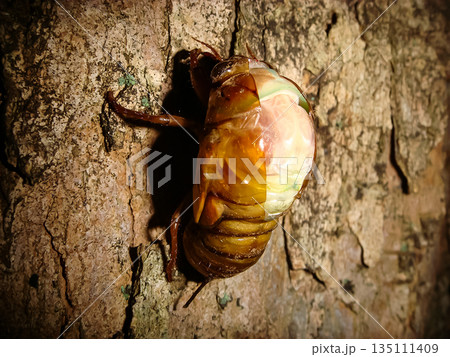 アブラゼミの羽化 背中が割れる 芦花公園 東京都世田谷区粕谷