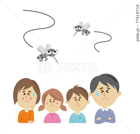 蚊の大量発生に困る家族のイラストイメージ