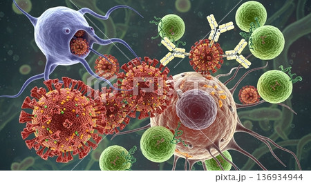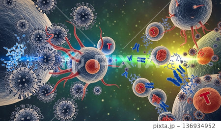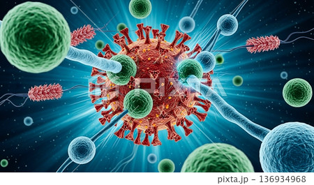 ウイルスやがん細胞と戦う免疫細胞イメージ