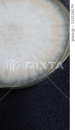 ガラスのシャーレ内に広がるコウジカビ