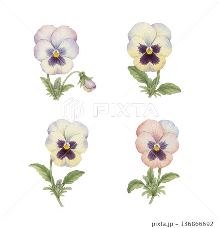 水彩パンジー4種セット|春のやさしい花イラスト素材