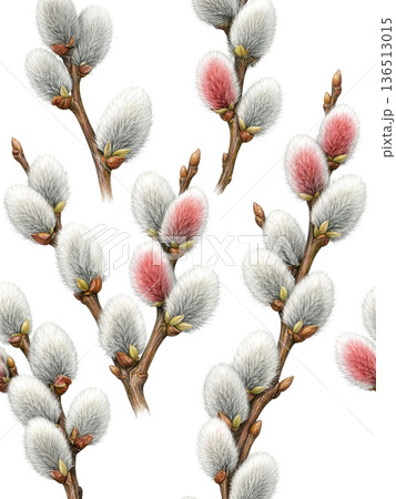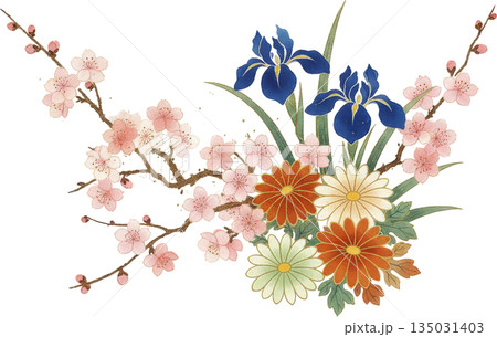 淡い色彩の春の花 日本画風の繊細な植物イラスト