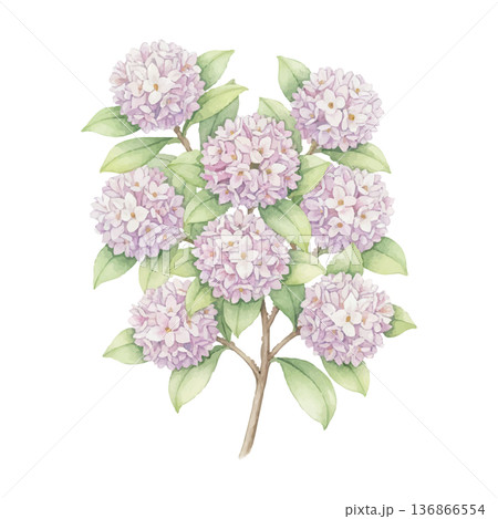 咲き誇るのジンチョウゲの花の手描きの水彩イラスト