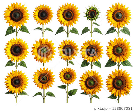水彩画のひまわりの装飾・パーツ素材セット