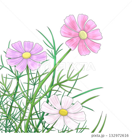 優しいピンクのコスモスで彩る水彩フラワーフレーム