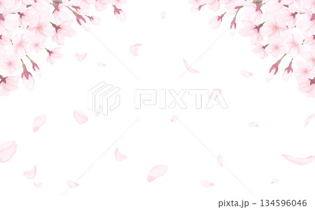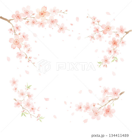 水彩の桜フレームイラスト 花びら舞う春の背景素材