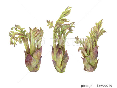 タラの芽(3つ)の水彩イラスト