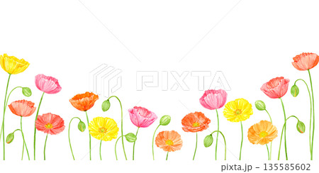 水彩で描いたカラフルなポピーのフレーム