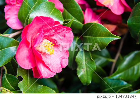 華やかなピンクのツバキ