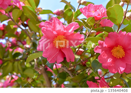 美しい満開のピンクの椿