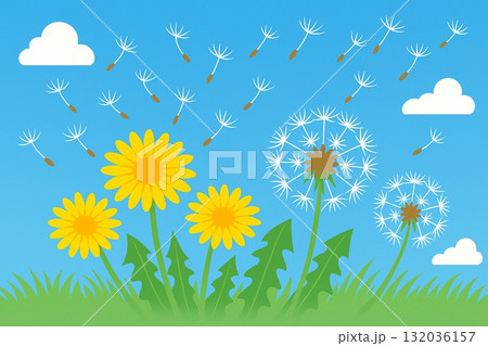 たんぽぽシリーズ:綿毛が舞うたんぽぽパターン