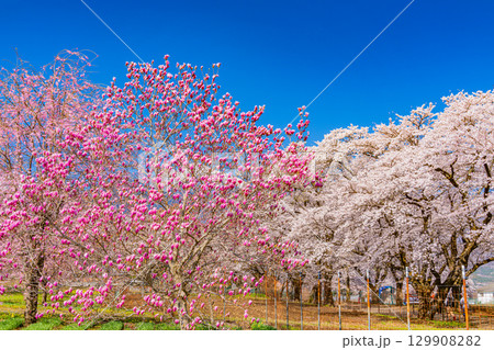 【山梨県】南アルプスを背に眞原(さねはら)の紫モクレンと桜