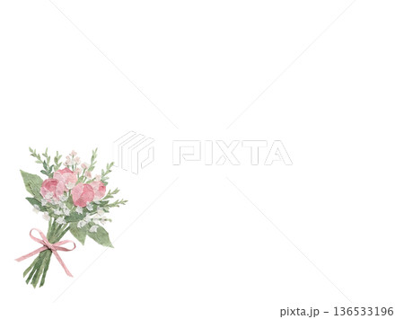 水彩ピンクの花束ブーケ メッセージ付き