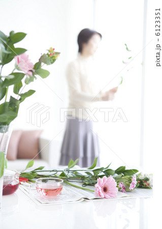 フラワーアレンジをする女性