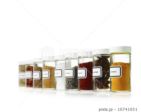 Studio shot of Jars with spices on white background
