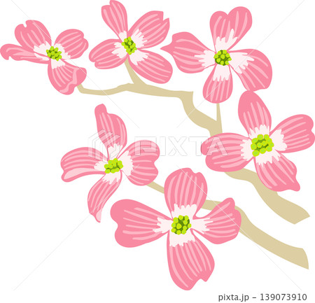 桜の木の背景 桜とピンクの花の木の手描き風イラスト 北欧風