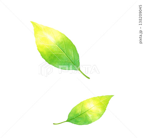新緑の葉のセット素材 ナチュラルな植物あしらい 春初夏のグリーンデザイン 白背景