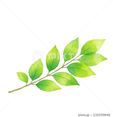 若葉が茂る枝のボタニカルイラスト素材(透過背景)