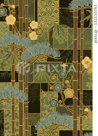 【はがき用】和風の松竹梅パターン素材