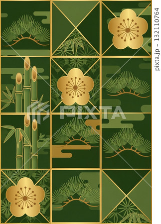 【はがき用】松竹梅の幾何学模様背景