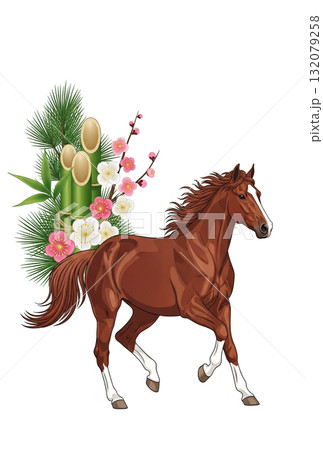【はがき用】松竹梅と馬の和風イラストデザイン